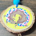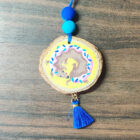 Rondin en bois peint à la mains avec son petit pompon et ses perles.